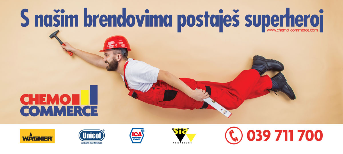Chemo Commerce d.o.o. je tvrtka iz Širokog Brijega koja je utemeljena 1992., i od samog početka se bavi veleprodajom i maloprodajom za građevinsku, metalnu i drvnu industriju. Pored boja i lakova u Chemo Commercu možete pronaći rješenja za sve vrste fasada, alate za farbanje, opremu za bazene, ljepila, kuhinjske ploče, sustave za suhu gradnju, sustave za navodnjavanje, brusne materijale, razne kemijske proizvode i drugo.