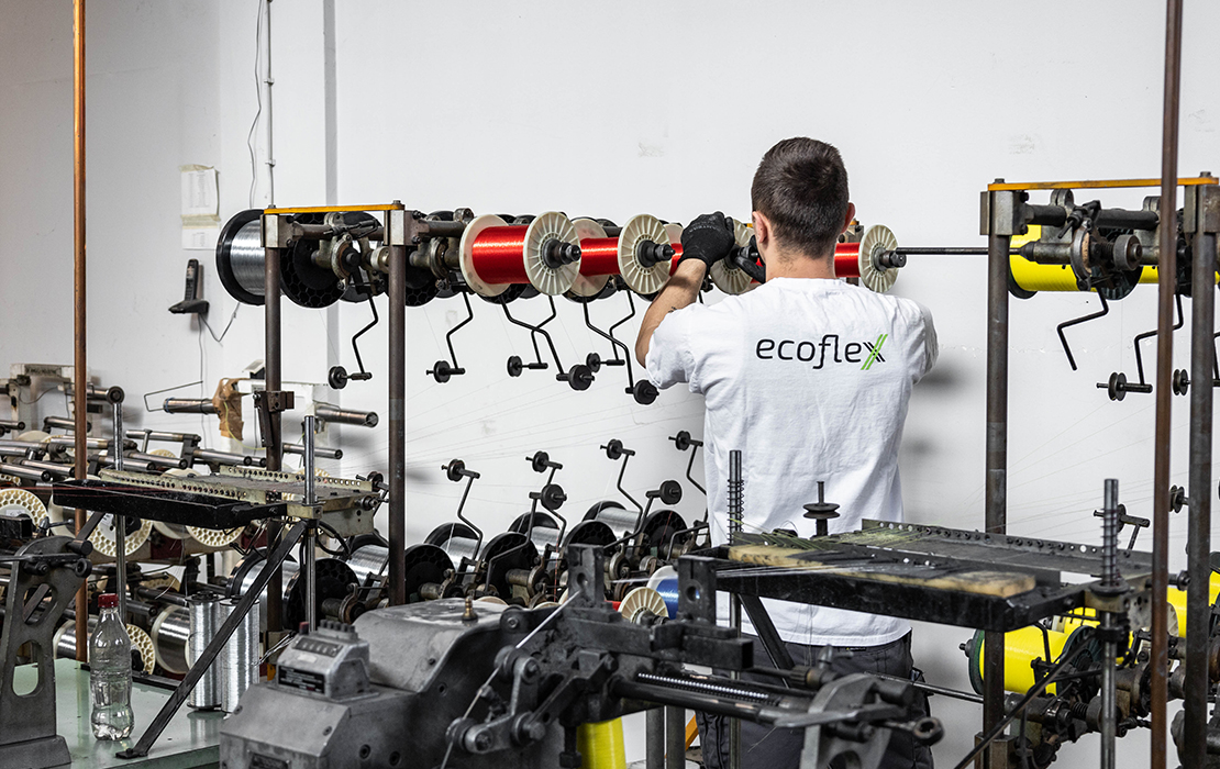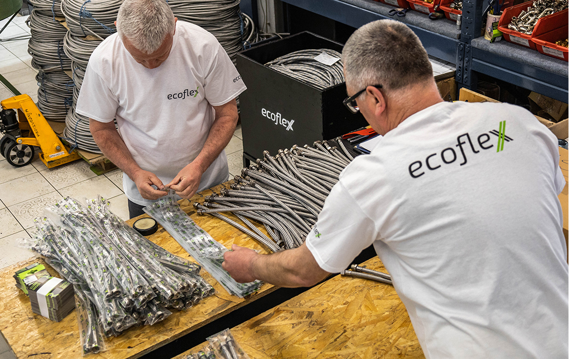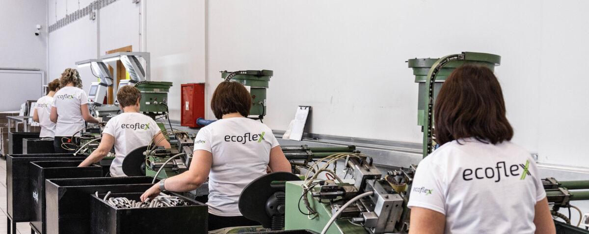 Odjel proizvodnje broji 13 djelatnika koji svakodnevno rade na procesu proizvodnje fleksibilnih cijevi Ecoflex. Svi naši proizvodi usklađeni su s europskim standardima, a nedavnim investiranjem u sofisticiranije strojeve povećali smo učinkovitost proizvodnje te bez problema možemo odgovoriti na zahtjeve kupaca iz zemlje i inozemstva. Ecos u prosjeku godišnje proizvede milijun komada fleksibilnih cijevi koje se potom plasiraju na tržište Bosne i Hercegovine, ali i susjednih zemalja.