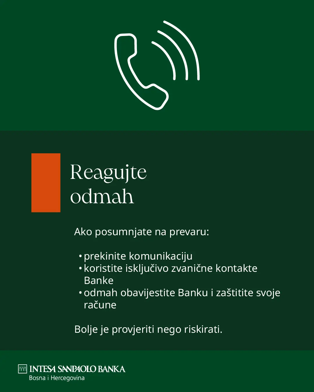 u integritet i održivost našeg djelovanja i djelovanja naše Banke.