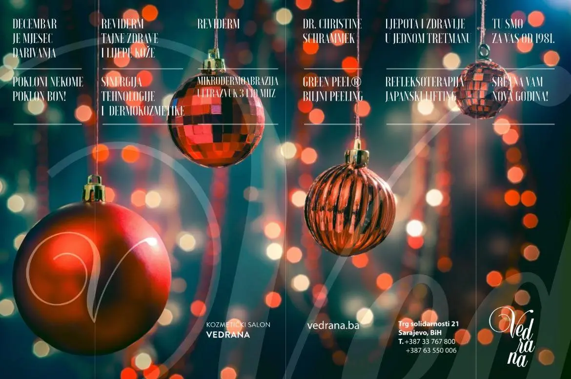 U Kozmetičkom salonu Vedrana radimo ono u šta vjerujemo i na to smo ponosne. Vjerujemo da savremene metode njege lica i tijela, uz primjenu odgovarajućih kozmetičkih preparata, dovode do dugoročnih rezultata koji naše klijente čine zadovoljnim osobama. Tom zadovoljstvu svejdočimo od 1981. godine. U svom radu primjenjujemo strategiju inovativnosti, neprekidno istražujući nove metode i tehnologije kako bismo korisnicima naših usluga ponudile vrhunske kozmetičke tretmane po evropskim kriterijima kvaliteta.