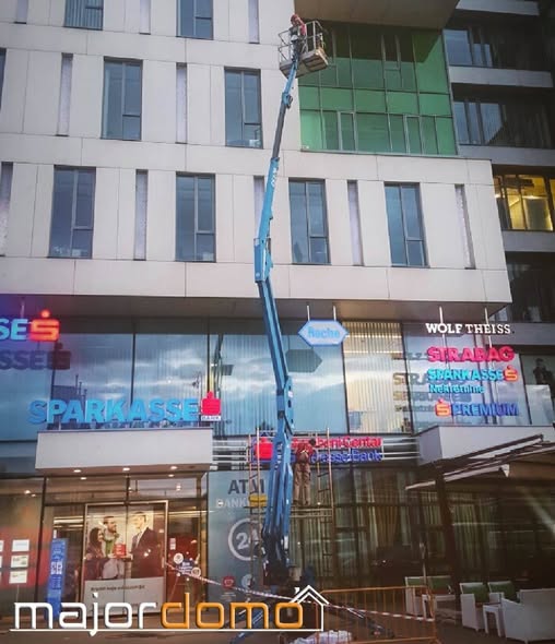 U okviru naših usluga u mogućnosti smo ponuditi pranje, poliranje i održavanje staklenih i drugih teško dostupnih površina, profesionalno i s odgovarajućom opremom za rad na visini (dizalica DINO Lift 260XT max. visine 26 m) kao i stručnim i obučenim osobljem za tekuće održavanje objekata.